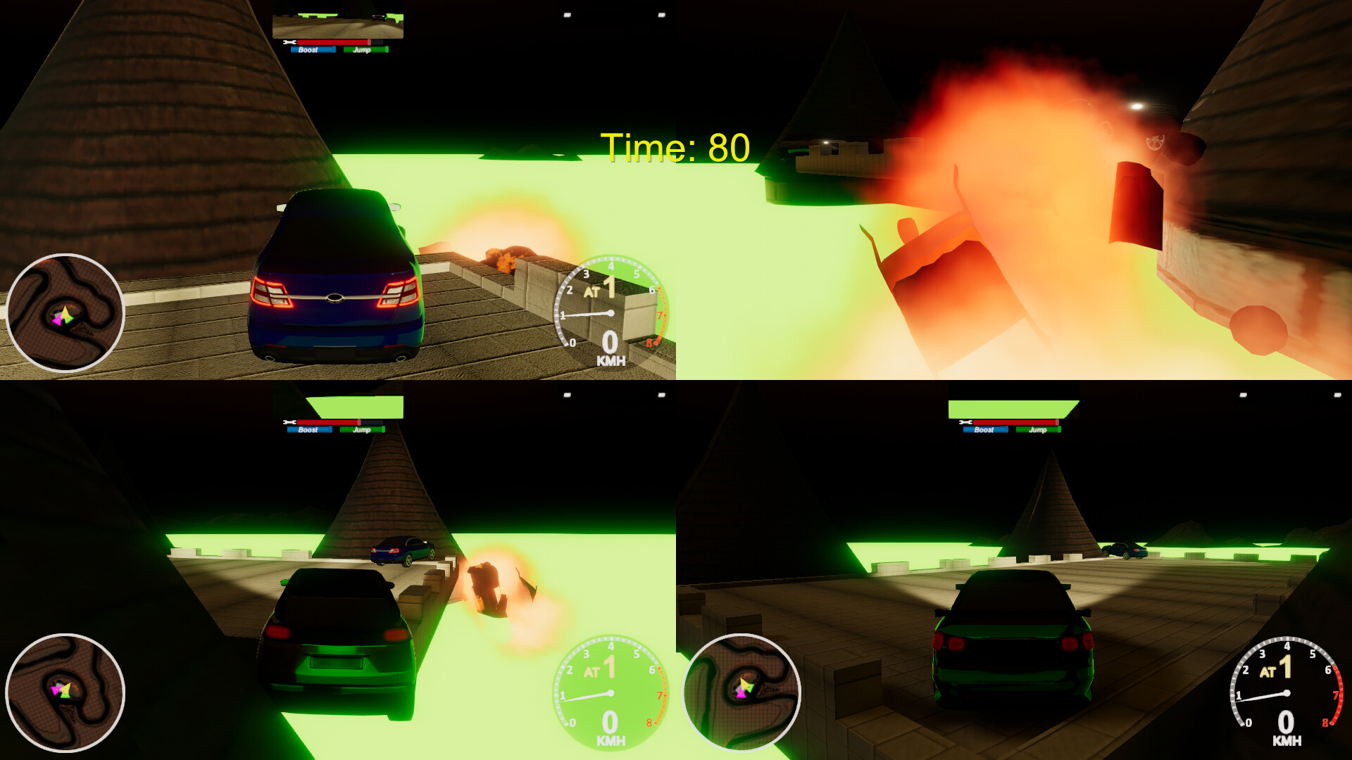 • Battle Mode: Engage in vehicular combat with unique boost or jump mechanics. Last car standing wins.
