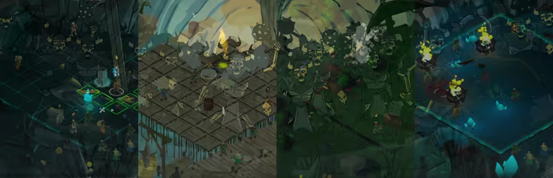 • Battle across dynamic environments where certain tiles trigger traps, curses, forced movement, or other effects that can shift the tide of combat.