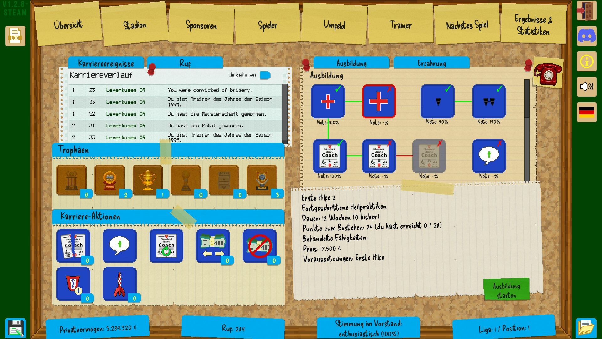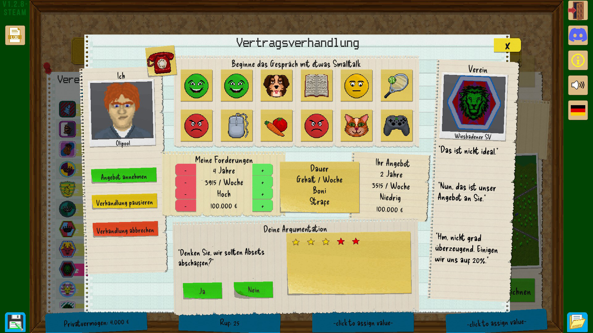 • Spielermanagement: Kauf und Verkauf, Einzeltraining, Vertragsverhandlungen etc.