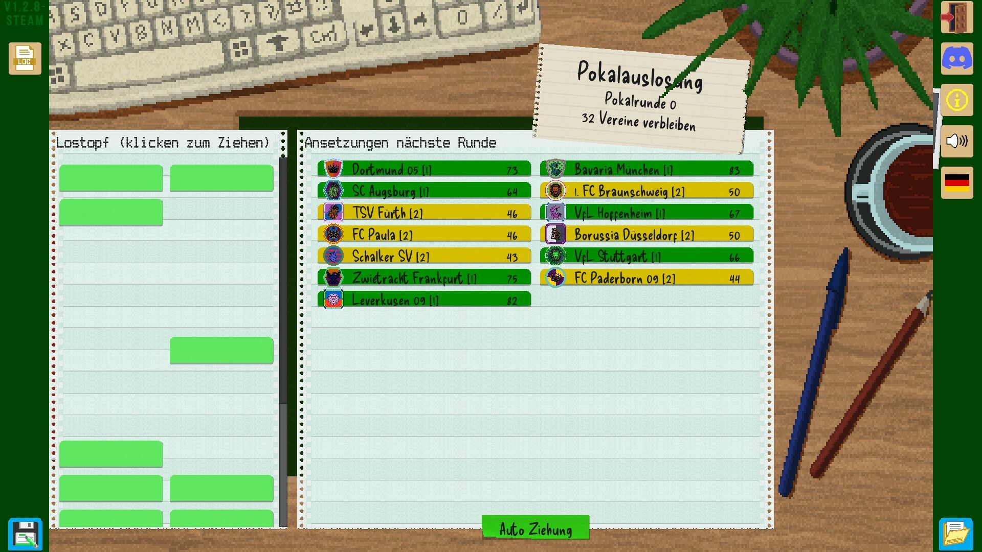 • ein optionales Kartenspiel oder ähnliches vor jedem Spiel, um taktische Vorteile für dein Team herauszuholen