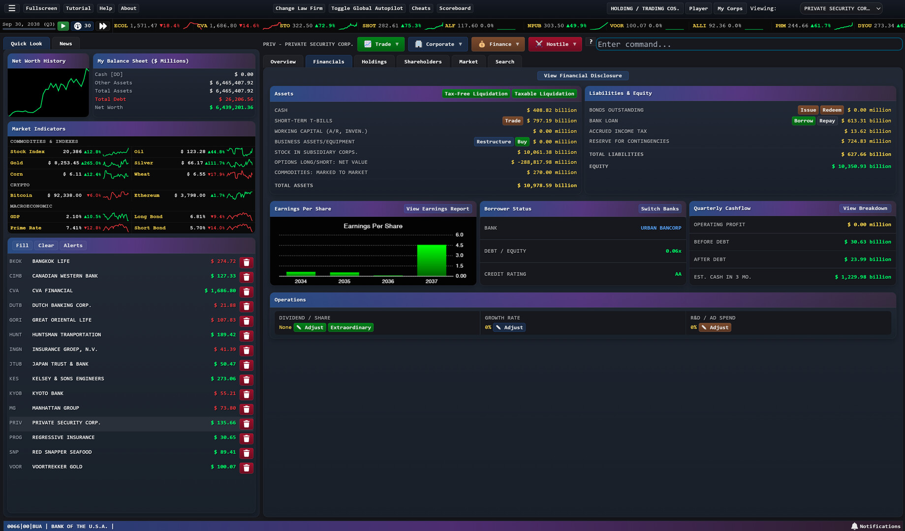 You have full control over corporate strategy. Expand, acquire, restructure, or gut rival companies. Dominate entire industries through takeovers, stock maneuvers, and financial engineering.