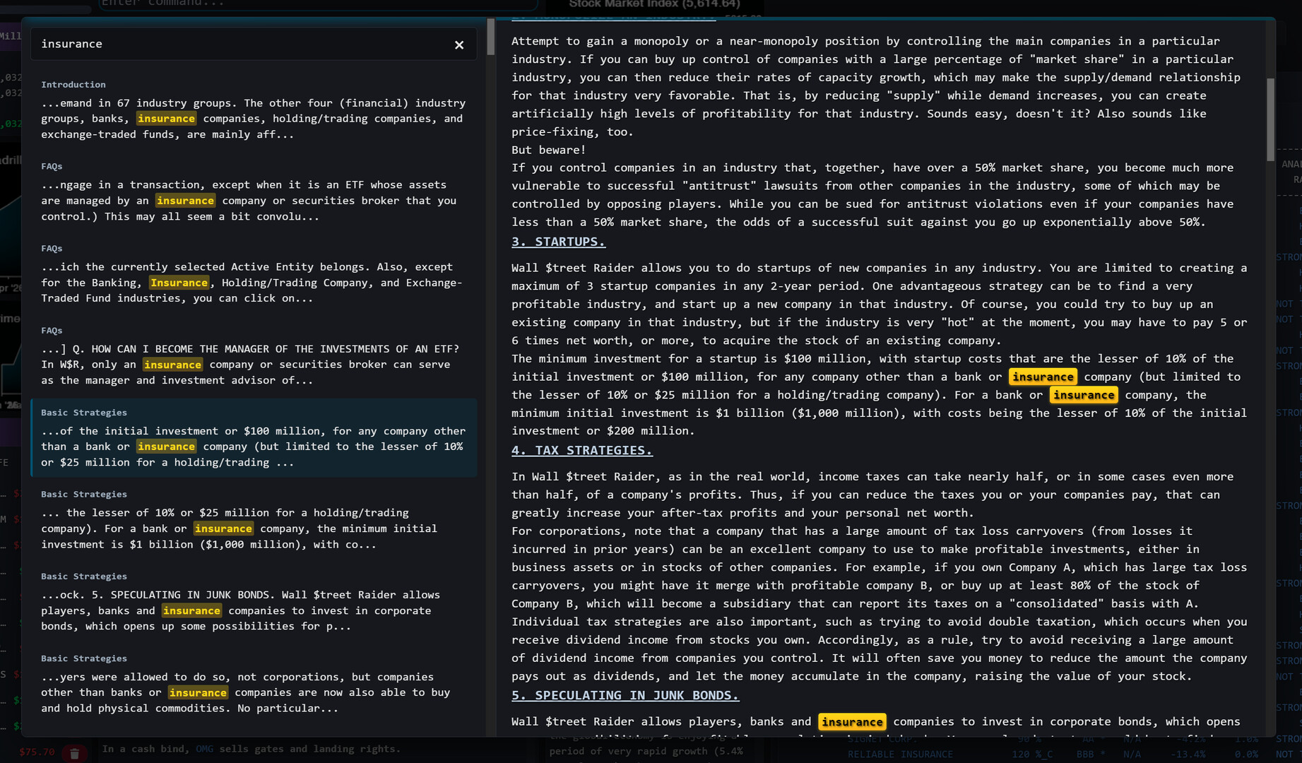 This isn't a simplified stock ticker with pretty graphs like most stock market games out there. Wall Street Raider models real financial instruments and tax implications with real depth.