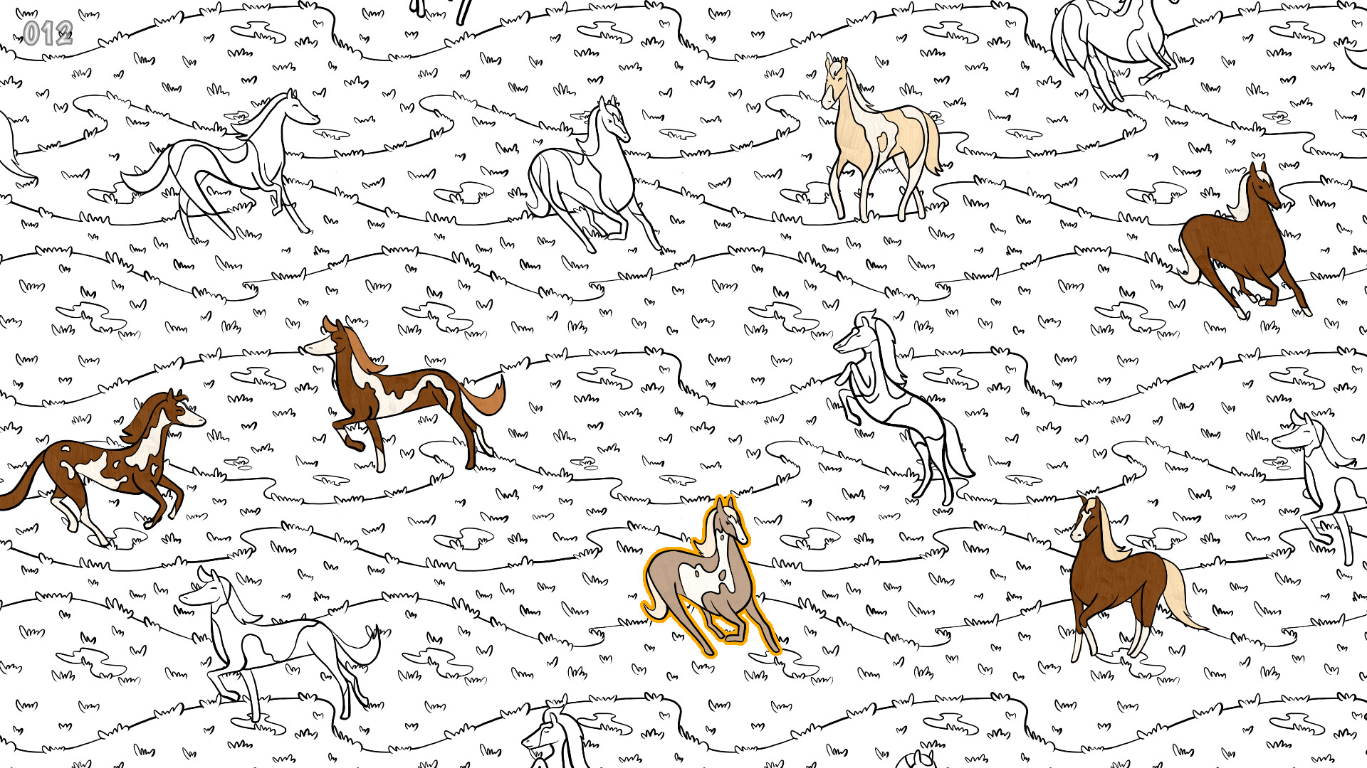 Enjoy two delightful stages featuring beautifully hand-drawn dogs and horses. Each animal has unique patterns and poses. Can you find all the matches and complete the stage?