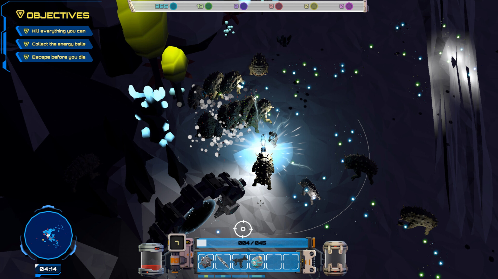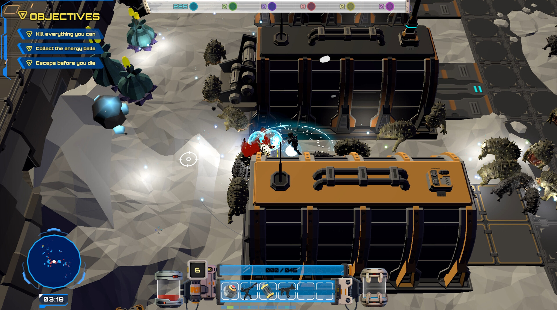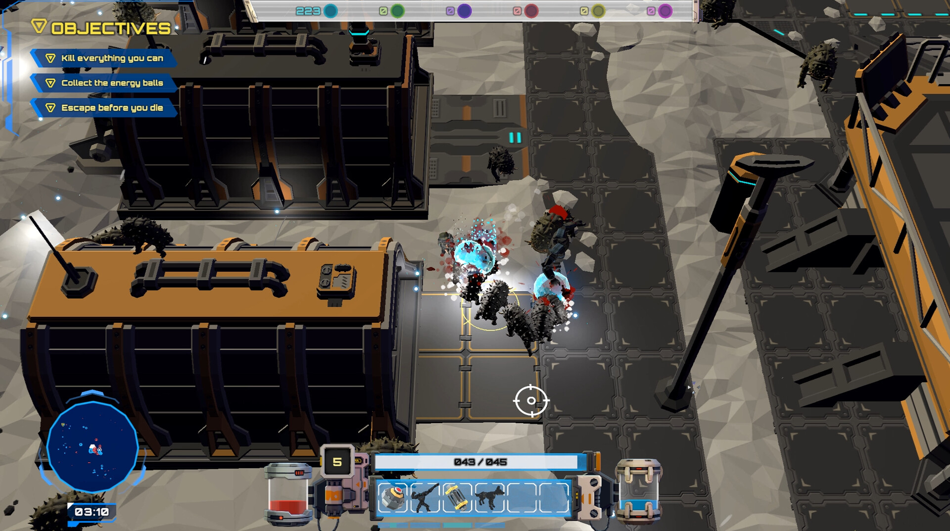 • Tuez plus d'ennemis, gagnez plus d'expérience et récupérez plus de molécules pour devenir plus fort (en achetant plus de choses).