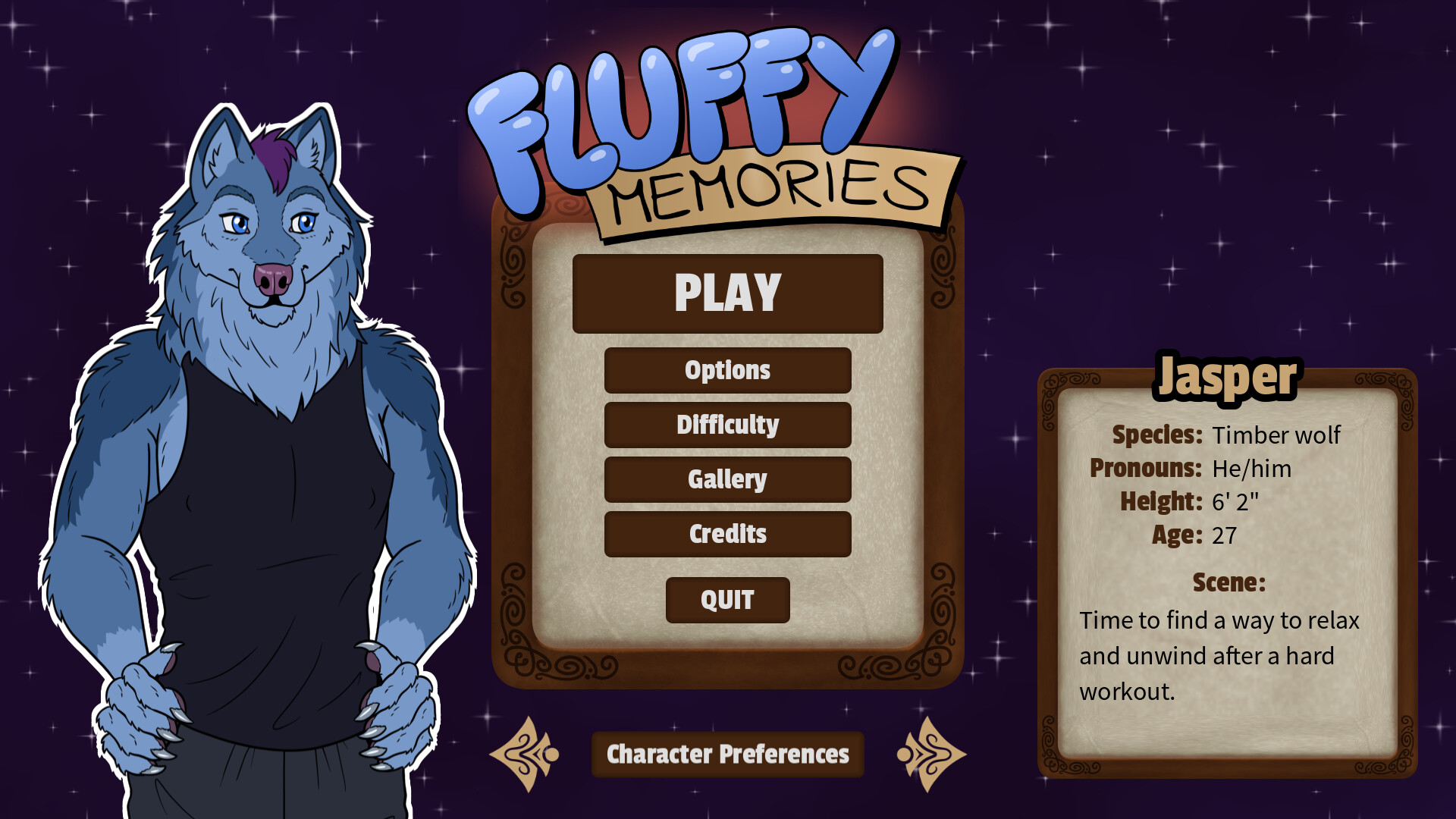 • Jasper (he/him) - trans male timber wolf who enjoys working out