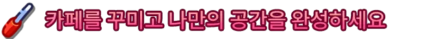 티 타베르나를 당신만의 스타일로 가꿔 보세요! 원하는 장식을 고르고 가구를 배치해, 따뜻하고 편안한 공간을 만들어 보세요. 카페가 아늑해질수록 더 많은 깜짝 선물이 기다리고 있어요!