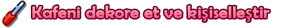 Taveranı tamamen kendine ait bir yere dönüştür! Dekorasyonları seç, mobilyaları yerleştir ve sıcak, davetkâr bir ortam yarat. Kafen ne kadar samimi olursa, o kadar çok sürpriz seni bekliyor!