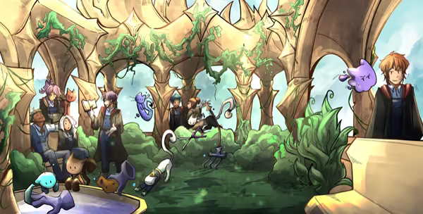 Lunaria is an ancient school of magic, founded by the legendary wizard Merlin. It is located on a floating island in the heart of the enigmatic Forbidden Vale. Inside, teachers, students, and magical familiars fill the school’s daily life.