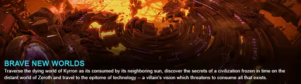 Traverse the dying world of Kyrron as it's consumed by its neighboring sun, discover the secrets of a civilization frozen in time on the distant world of Zeroth and travel to the epitome of technology -- a villain's vision which threatens to consume all that exists.