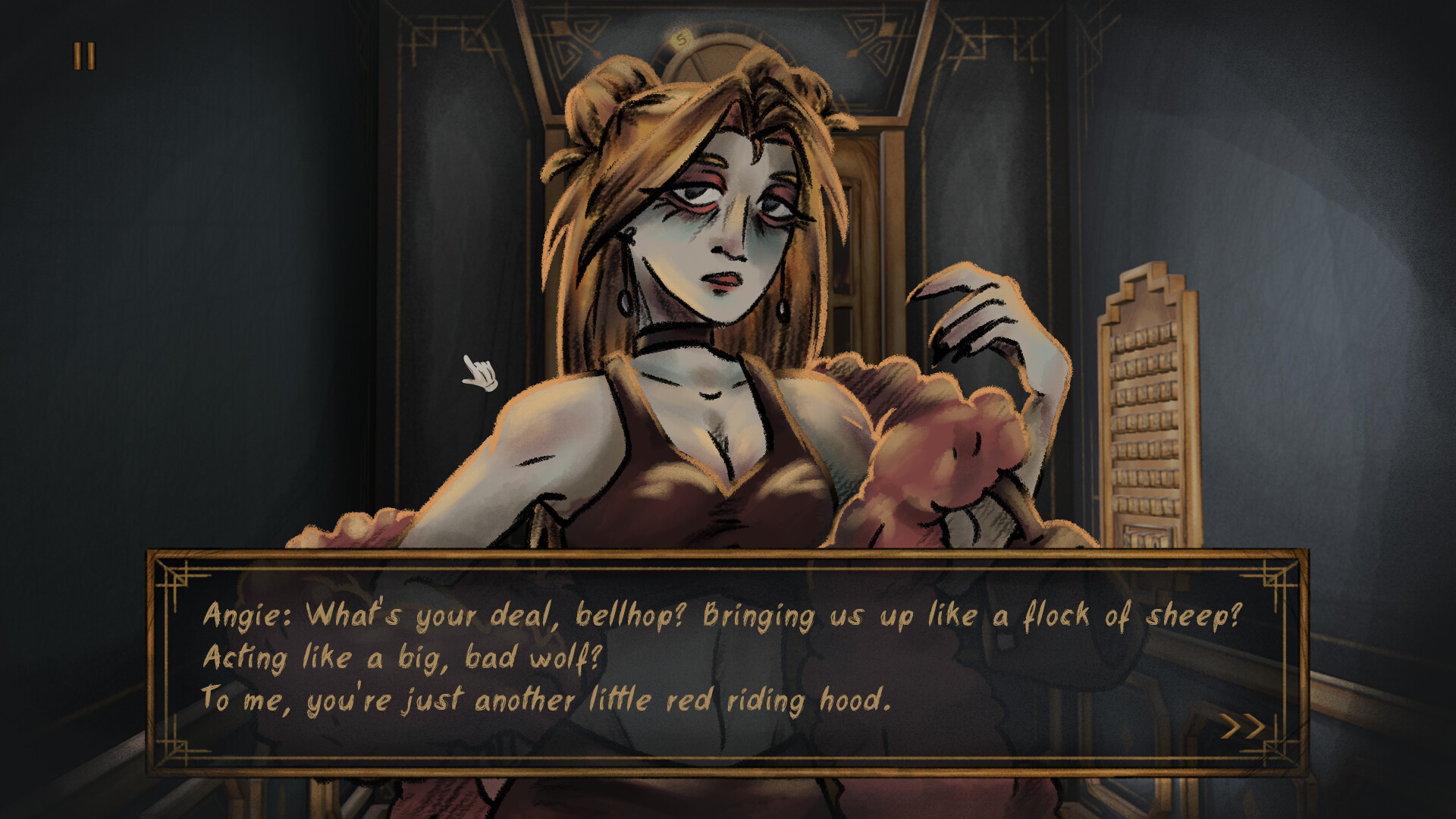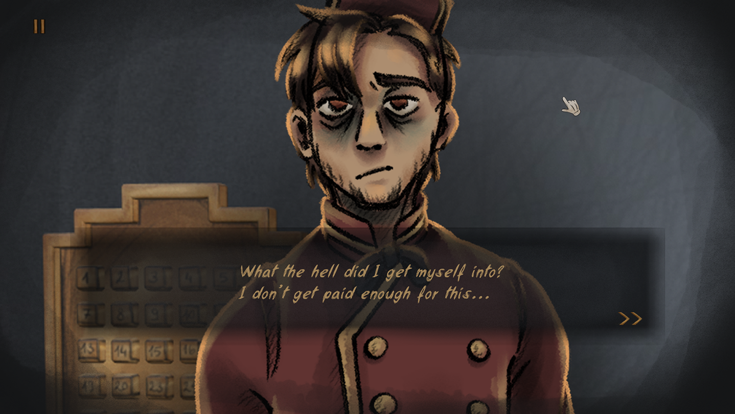 Up or Down? is a dark choice-driven visual novel in which you choose which guests will be evacuated from the Deluxe Resort. Talk to them, search them, and if they prove suspicious, be sure to do what you must, bellhop! Will you manage to evacuate only healthy guests, or will you end up killing everyone?