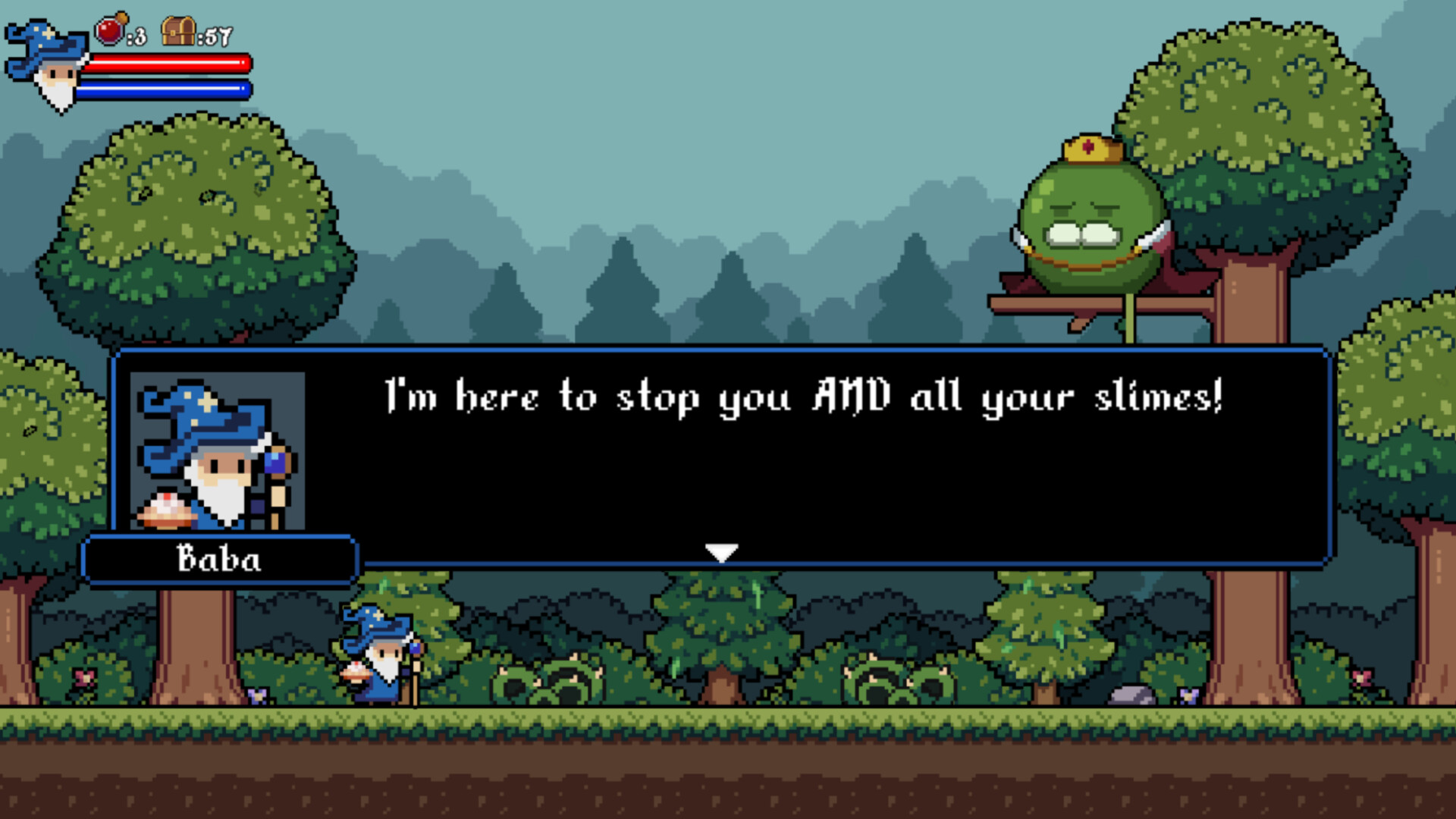 In this vertical slice of Rune Song, you'll platform through the forest and adjoining cave systems, meet a variety of characters, complete optional side quests, and take down the contemptible Slime King!