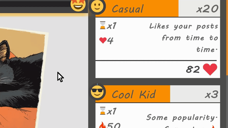 Step into the shoes of an ambitious influencer, clicking and buying your way to fame. Bribe followers, become stronger with upgrades and buy a wide range of consumables to dominate all of the hashtags of the internet space!