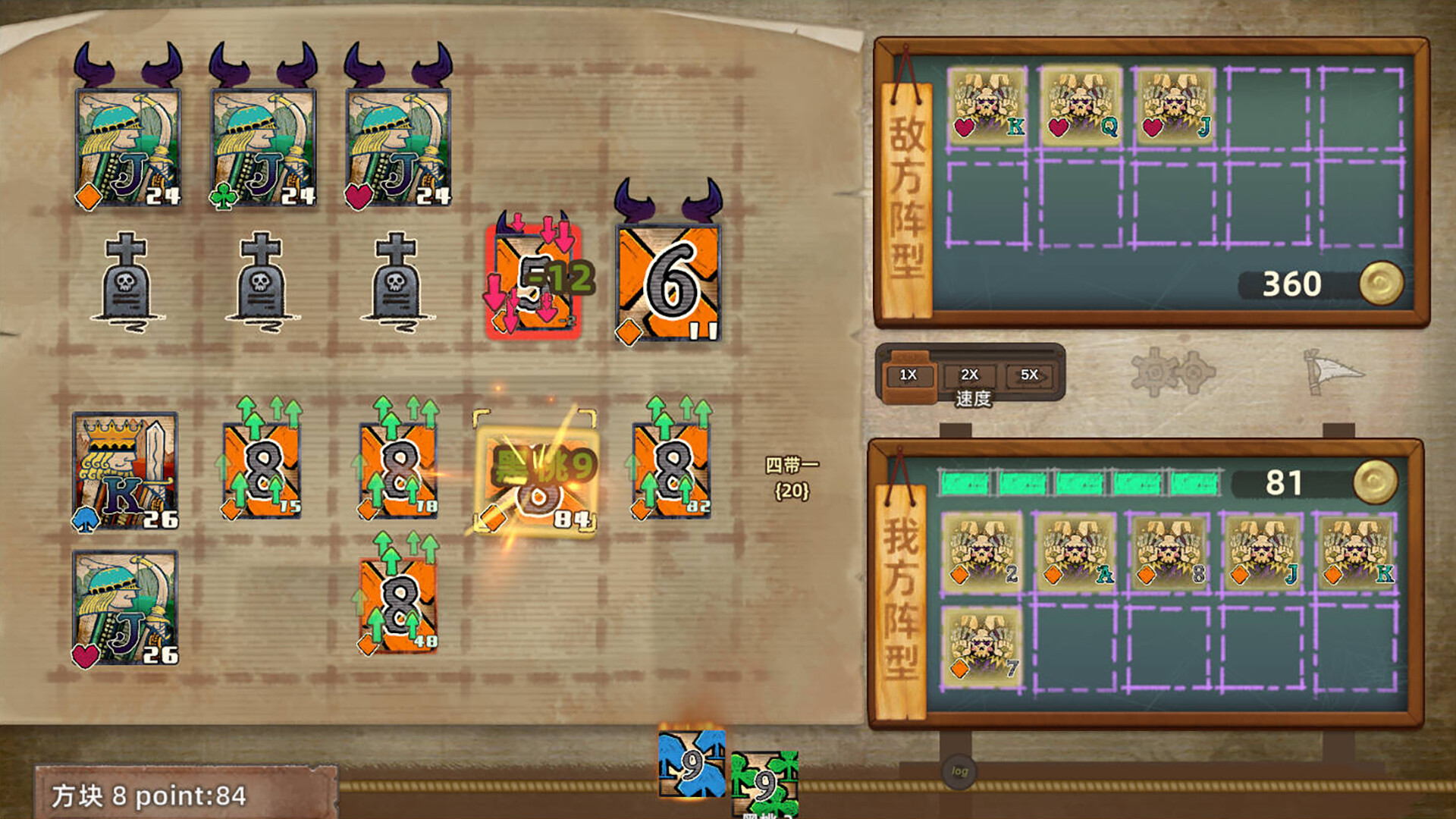 This is a turn-based strategy game based on poker cards. Each poker card has a specific skill mechanism. You can also devour poker cards to gain new skills, collect high-scoring cards, and defeat enemies from different time and space (even yourself)