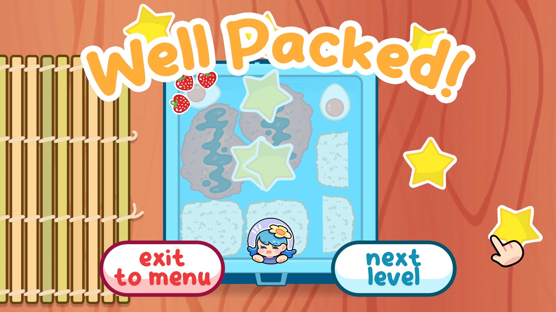 “The current Early Access Version contains 2 sets of levels, with 6 levels each. The 1st set of levels contains Japanese food, while the 2nd set contains Italian food. In those levels the players can slice, rotate and drag their food in order try and make them fit into the lunch box.”