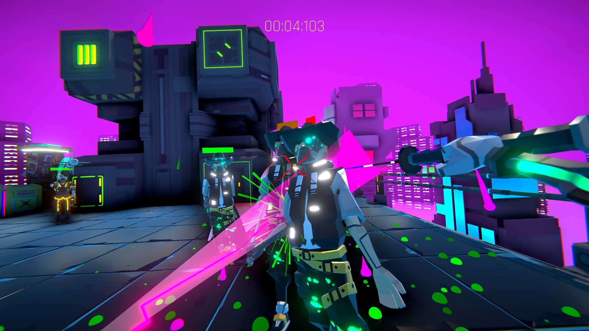 CYBERSLAYER is a ruthless first-person action slasher that immerses you in the adrenaline-fueled rhythm of a cyberpunk future. You must overcome deadly trials within a giant megastructure, the last refuge of humanity after a global cataclysm.
