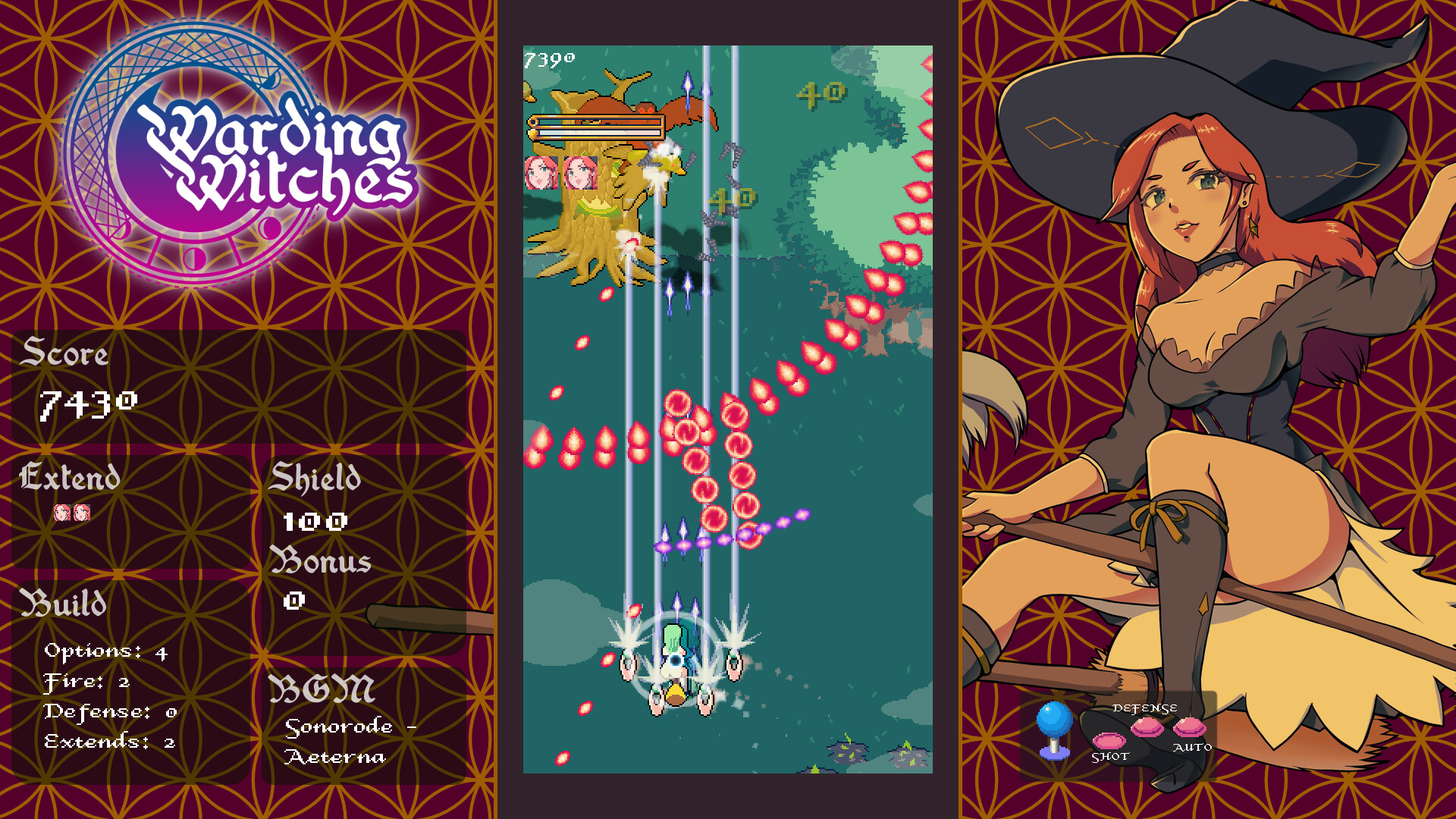 Warding Witches offers a classic, unapologetic bullet hell shoot ‘em up challenge while also putting defense into players’ hands. Experience an adrenaline-filled flow alternating between attacking, defending and dodging, amplified by an intuitive scoring system that weaves into gameplay seamlessly.