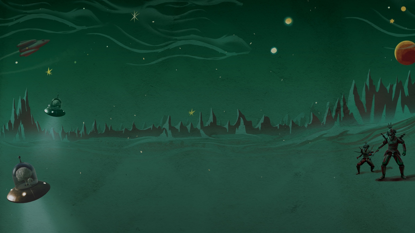 Fire up your ray guns, crystal swords, and laser whips, and get ready for thrills and chills! With three incredible movie stars playing out decidedly B-level sci-fi exploits, Dick Starspeed, Scarlet Nova, and Robot will have you ready to jump off the side of the tower—right into adventure!