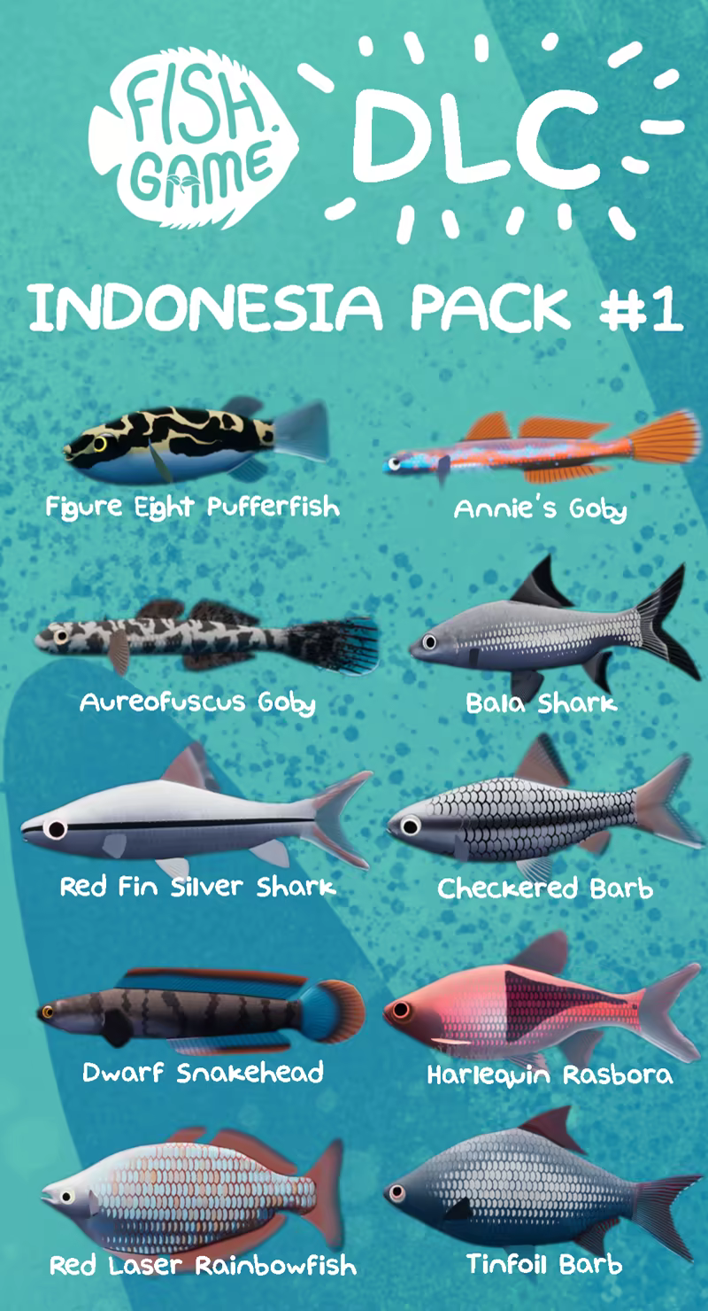 An exciting variety of 10 new fish from your collection from Indonesia! These will appear in an in-game DLC store as well as appropriate existing stores for their species. Here’s what you’re getting!