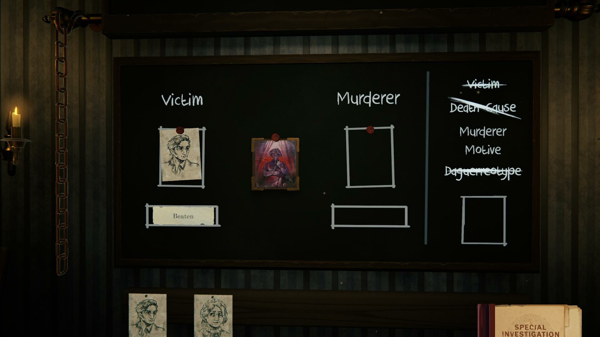 Finally, rely on your trusty detective's board to connect each victim to their killer and bring this harrowing case to a close.
