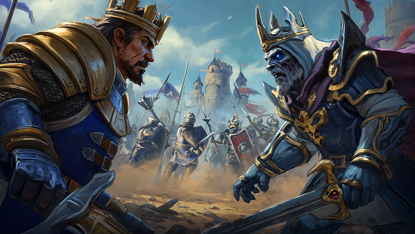Lead heroes in a battle for the Grail as humans and undead clash in a strategic quest filled with deckbuilding, kingdom management, and evolving turn-based combat.
