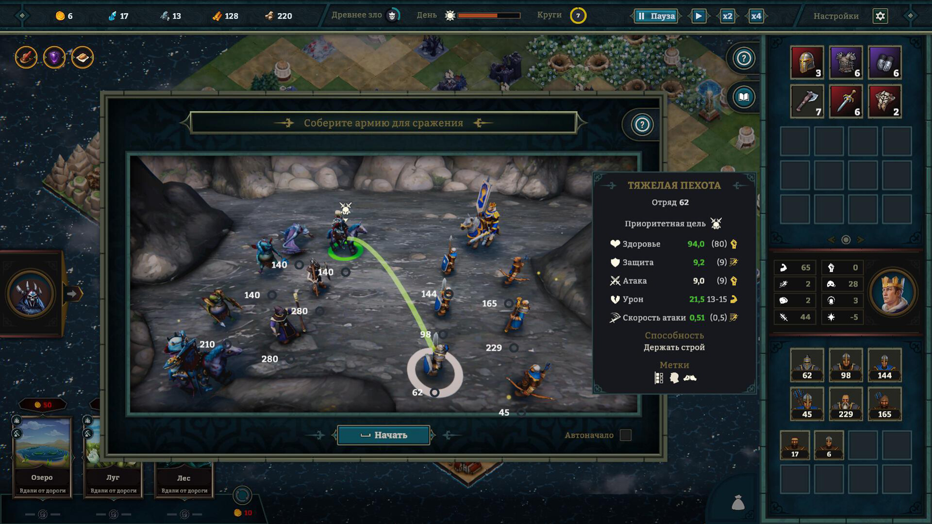 В боях с силами зла тебе предстоит выбирать диспозицию юнитов с целью снижения потерь и увеличения боеспособности.