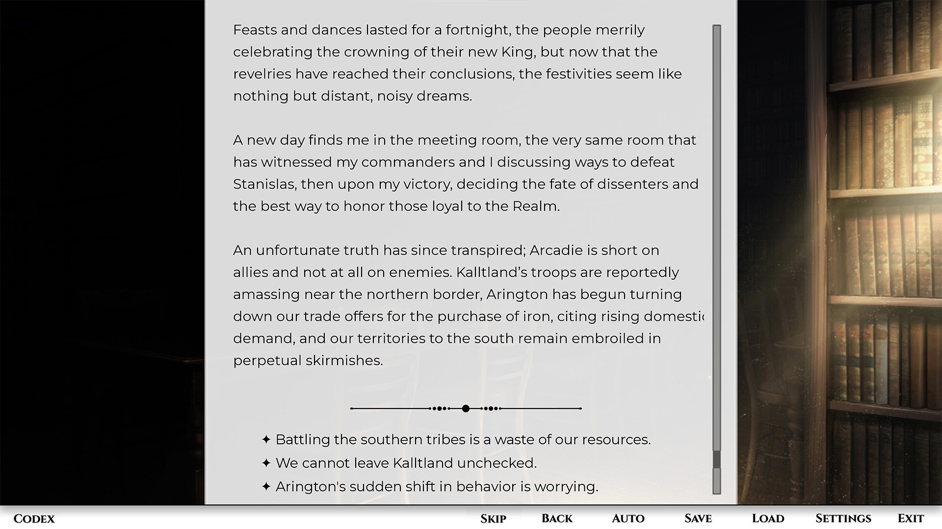 • Rekindle your romance begun in Arcadie: Second-Born. Rejoin Cyril, your betrothed; return to Will, your most loyal commander; or get in bed with your enemy—literally.