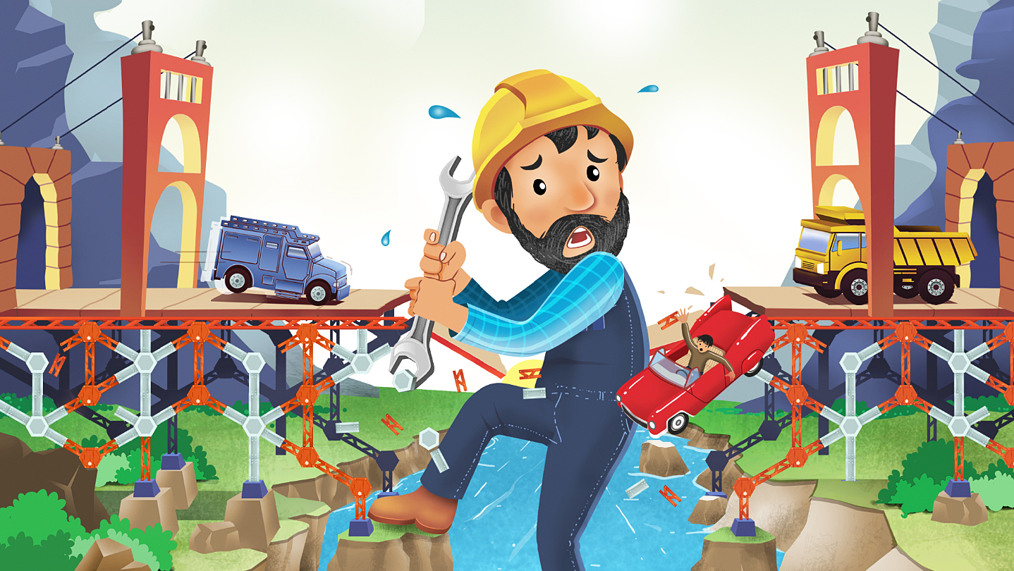 Play with your friends in tense, turn-based rounds where you'll draft bridge and vehicle tiles, manage your bridge budget, and push your luck as vehicles threaten to bring your careful constructions tumbling down.
