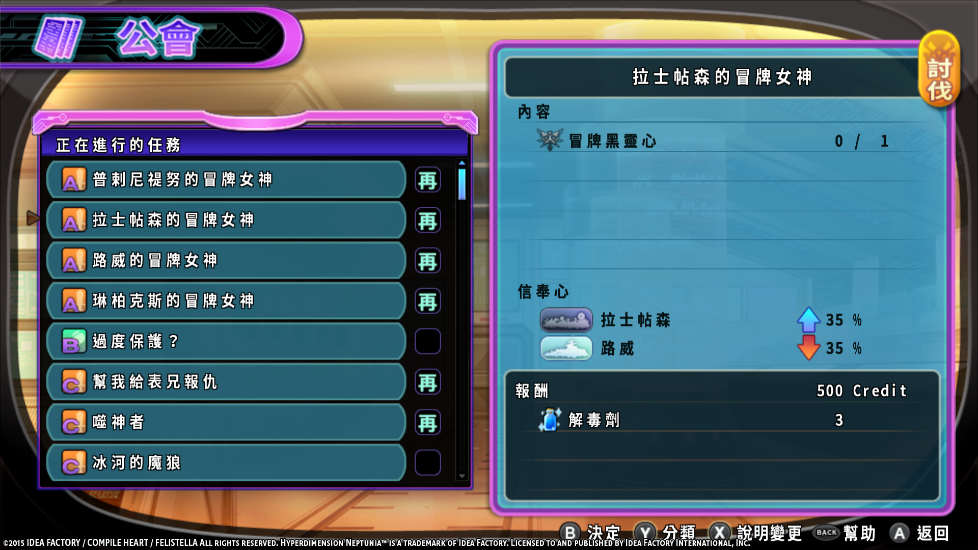 在普剌尼禔努、拉士帖森、路威、琳柏克斯四地各增加一個可使信奉心占有率產生大幅度變動的任務。打敗出現在這些任務中的強敵,可使信奉心占有率產生大幅度變動。