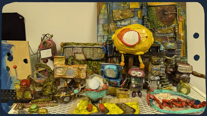Everything in Mashina is handmade out of various materials and animated using traditional stop-motion techniques. We then turn the animations into textures and sprites we can use in game, adding normal maps which let us have dynamic lighting and shadows.