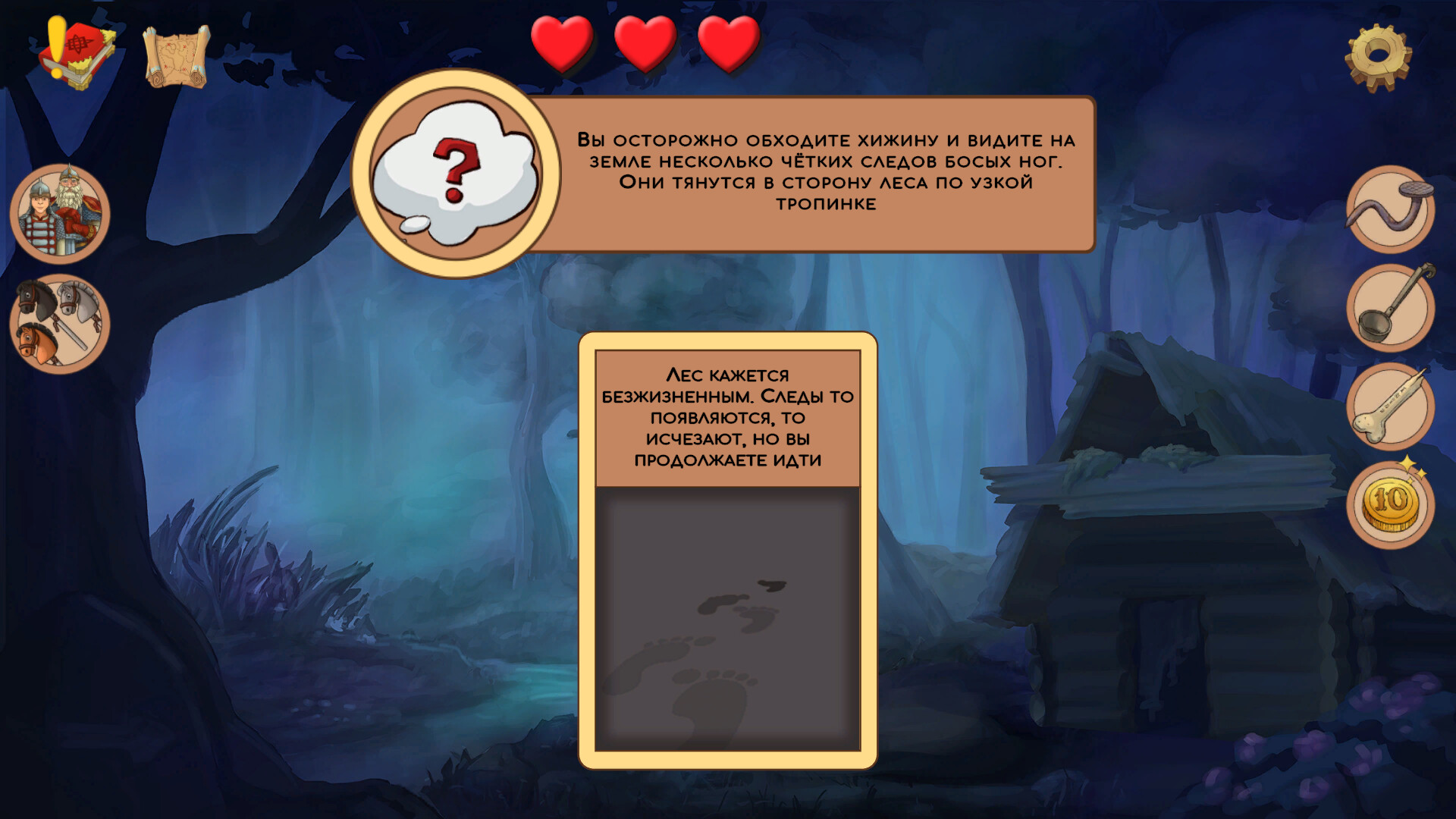 Каждая ситуация — это сцена с двумя картами. Помочь вытолкать телегу или обмануть стражников? Выбирайте, проверяйте, что выйдет, и не удивляйтесь, если вместо подвига окажетесь в кустах. Пути и финалы различны, а смерть — лишь повод начать заново. Докажи, что справишься с этим!