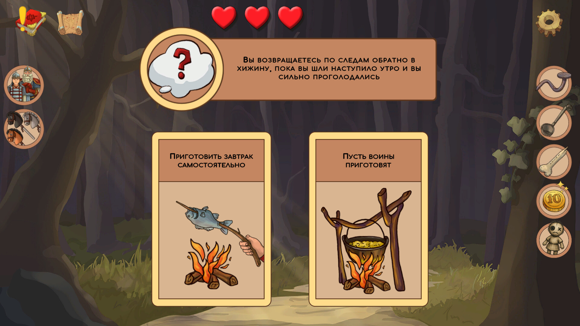 Каждая ситуация — это сцена с двумя картами. Помочь вытолкать телегу или обмануть стражников? Выбирайте, проверяйте, что выйдет, и не удивляйтесь, если вместо подвига окажетесь в кустах. Пути и финалы различны, а смерть — лишь повод начать заново. Докажи, что справишься с этим!