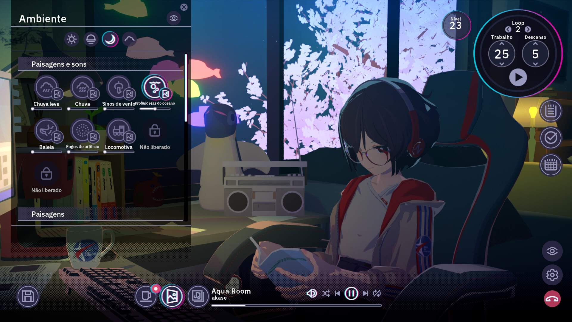 Quer você prefira relaxar e trabalhar em um ritmo tranquilo, ou aumentar sua motivação com melodias carregadas de emoção, Chill Talk oferece uma variedade de músicas originais criadas para diferentes cenários de trabalho.