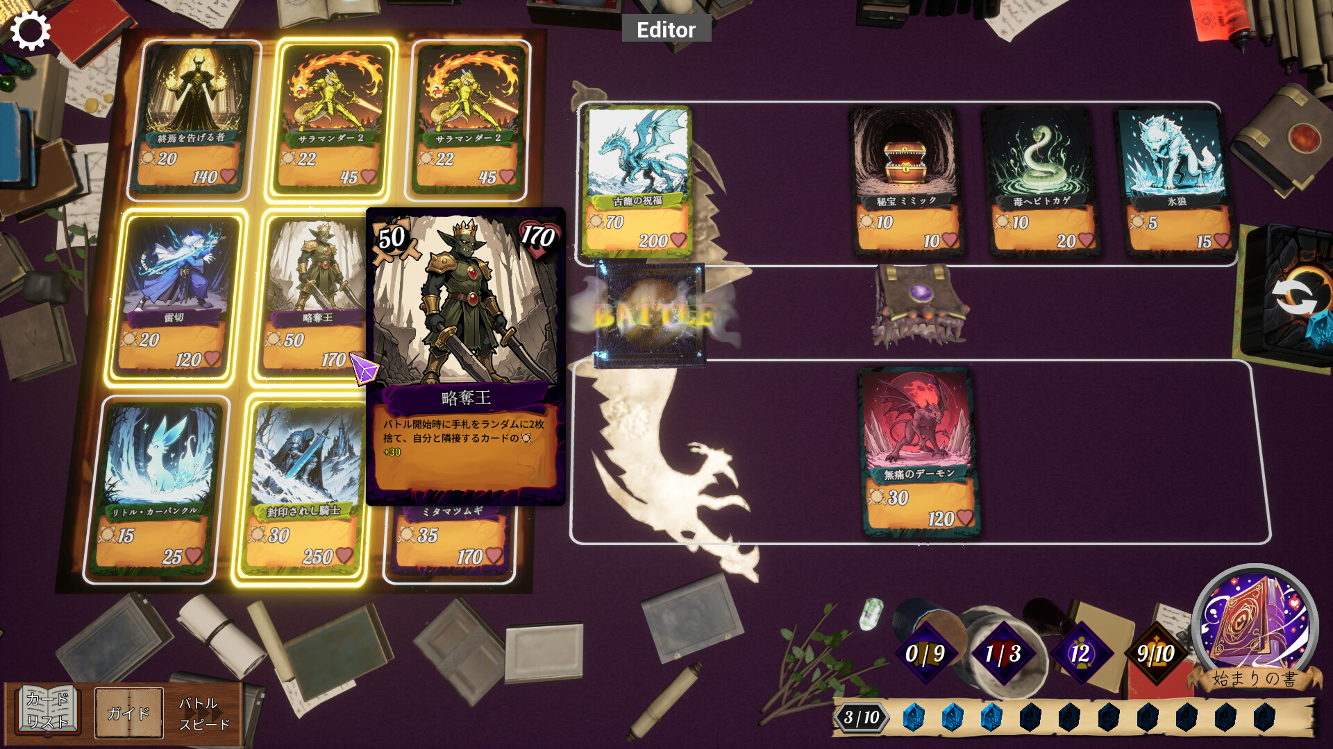 戦いの鍵は戦闘前に組む3x3に配置された9枚のカード