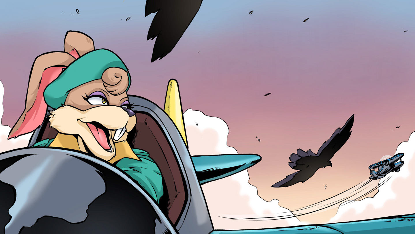 The adventure doesn’t stop in the skies! Floppy Flights of Fancy expands the Air Hares universe, bringing the untold origins of Captain Rabbo Sunskipper, Dirk Doggo, and their fight against the ruthless Twin Horn and the Gale Gang to life.