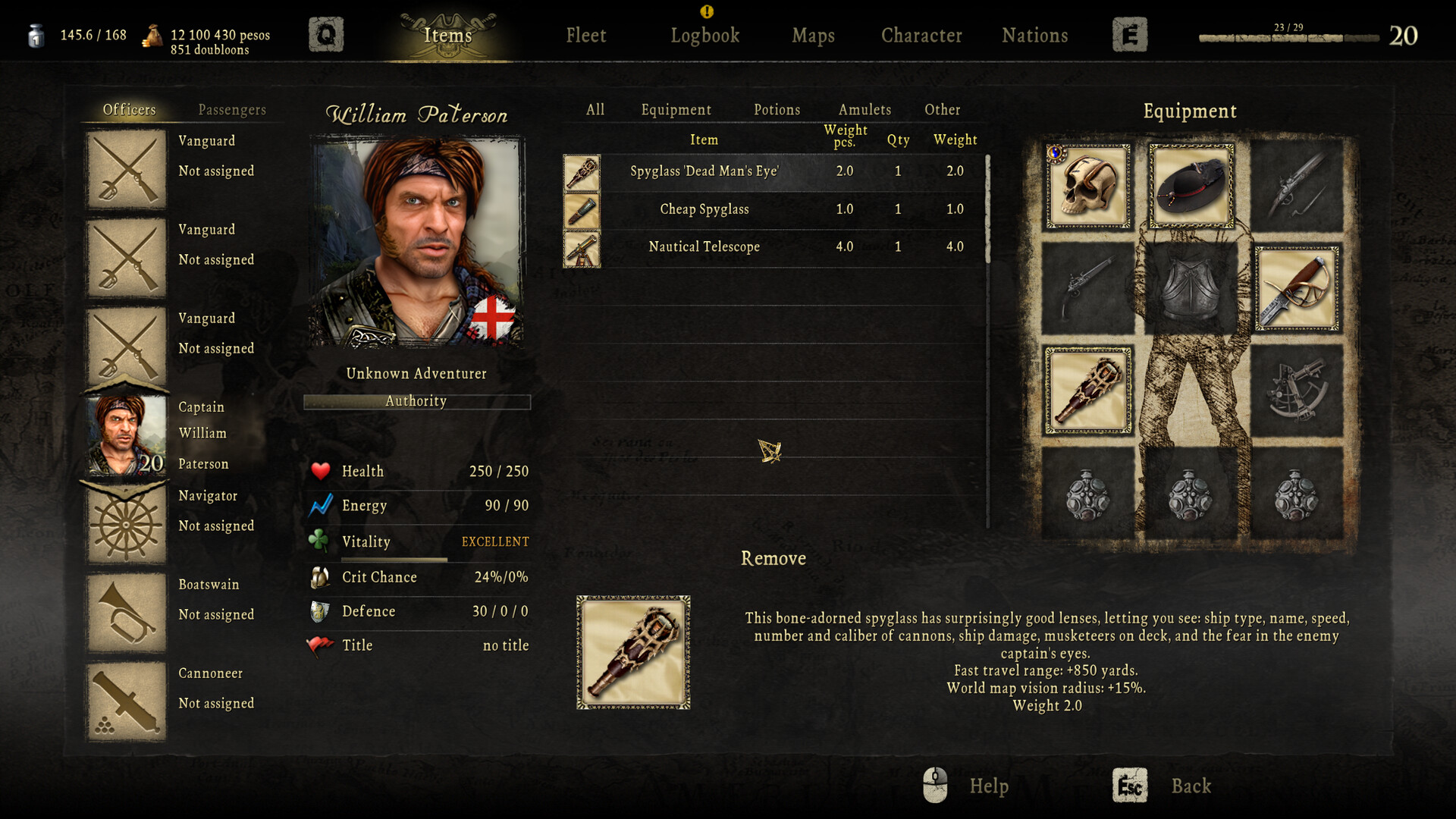 • The boss fight is designed for a character of at least level 15 with decent equipment, officers, artillery and boarding skills