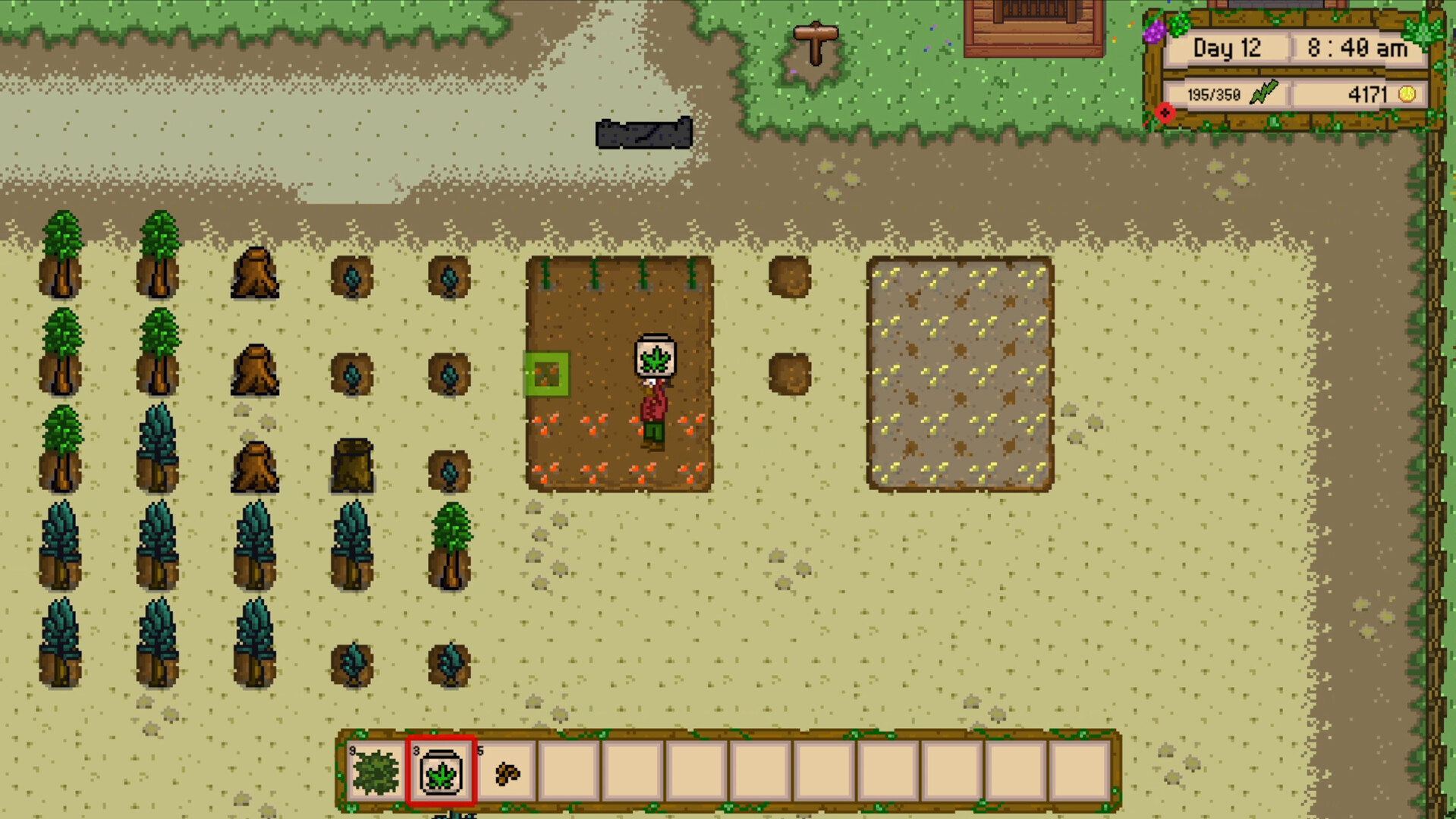 • Visit Smokey's Shop to purchase seeds for up to 7 different types of crops.  Follow the straight and narrow path and grow parsnips or grapes and hops or take a more immoral approach and focus on crops of an illegal nature.  Whatever makes you the most profit!