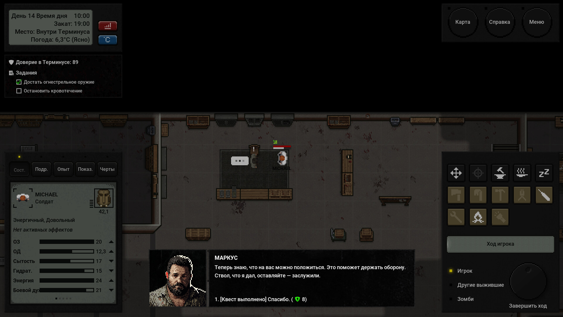 У каждого выжившего в Терминусе — своя история и уникальные способности. Кто-то защищает станцию, кто-то заботится о провизии и лекарствах. Общайтесь с ними, узнавайте их судьбы и помогайте в борьбе за выживание.