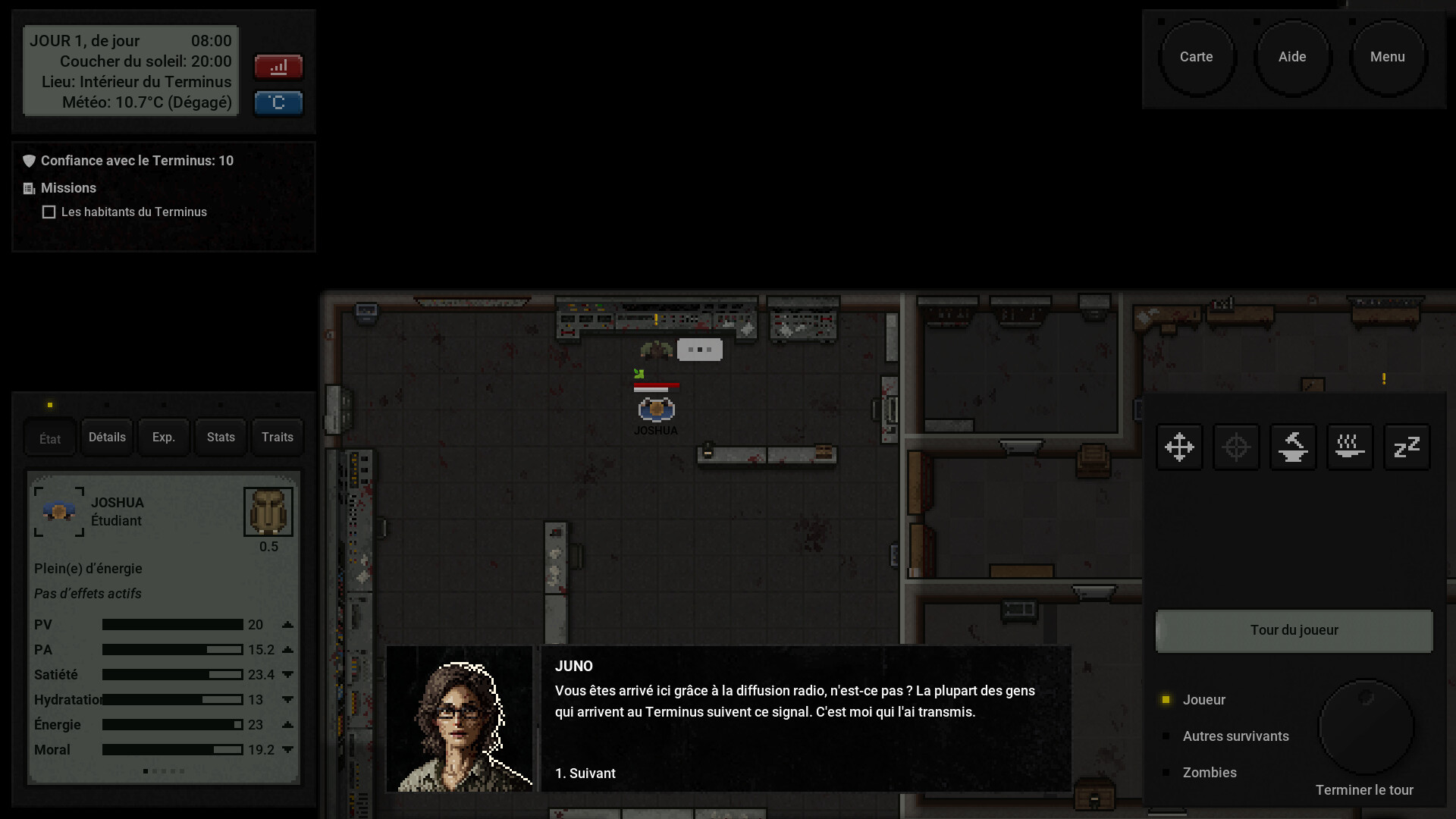 Les survivants du Terminus ont chacun leur propre histoire et leurs propres capacités. Certains sont chargés de défendre la station, tandis que d'autres gèrent l'approvisionnement en nourriture ou s'occupent des soins. Parlez-leur, découvrez leurs histoires et apportez votre aide.
