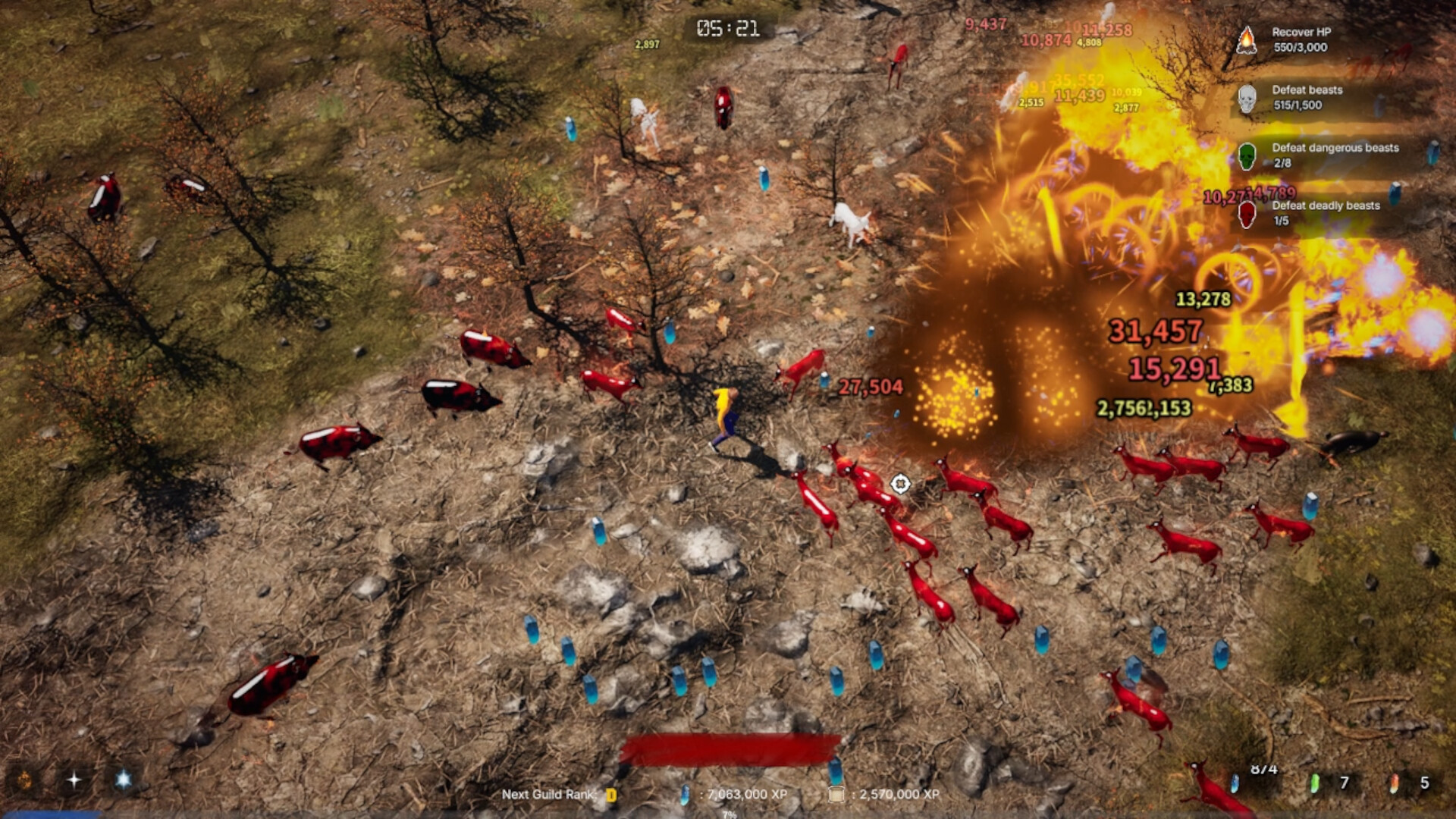 Survive relentless waves of burning beasts. Collect gems and complete quests to buy powerful upgrades. Rise through the ranks of the adventurer’s guild to unlock new map and quests. Your goal: find the cause of the chaos!