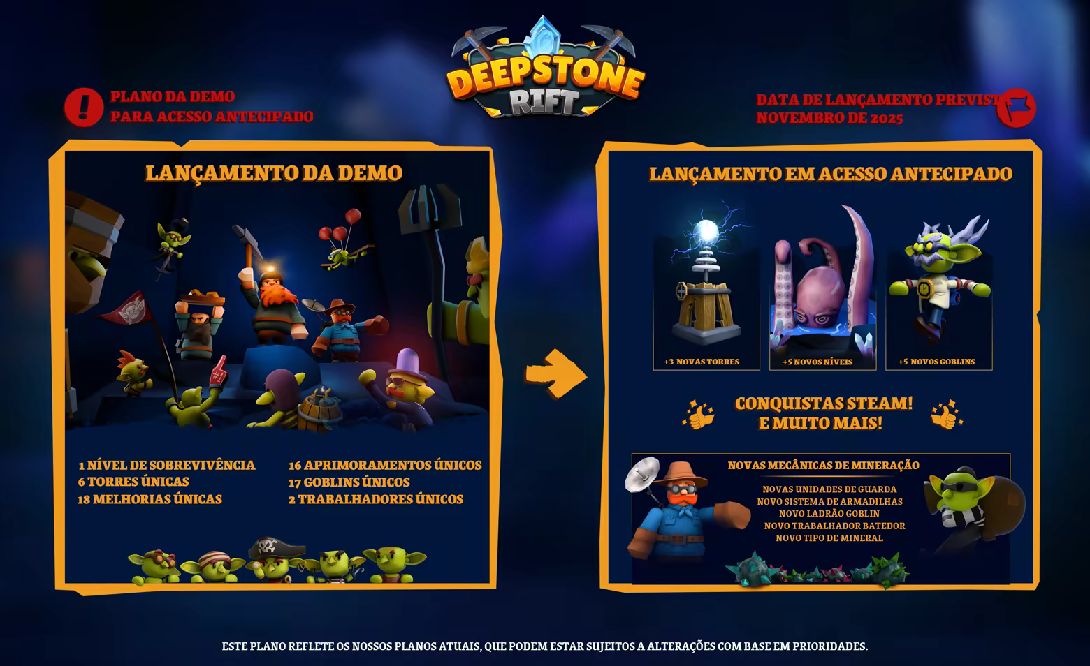 ""Deepstone Rift baseia-se em profundidade estratégica, sinergia entre torres e uma campanha em expansão. O Acesso Antecipado permite-nos envolver jogadores enquanto os sistemas principais continuam a crescer. Queremos recolher feedback sobre equilíbrio, dificuldade, mecânicas de torres, comportamentos inimigos e novas funcionalidades como portões, sistemas de patrulha e habilidades de herói.
