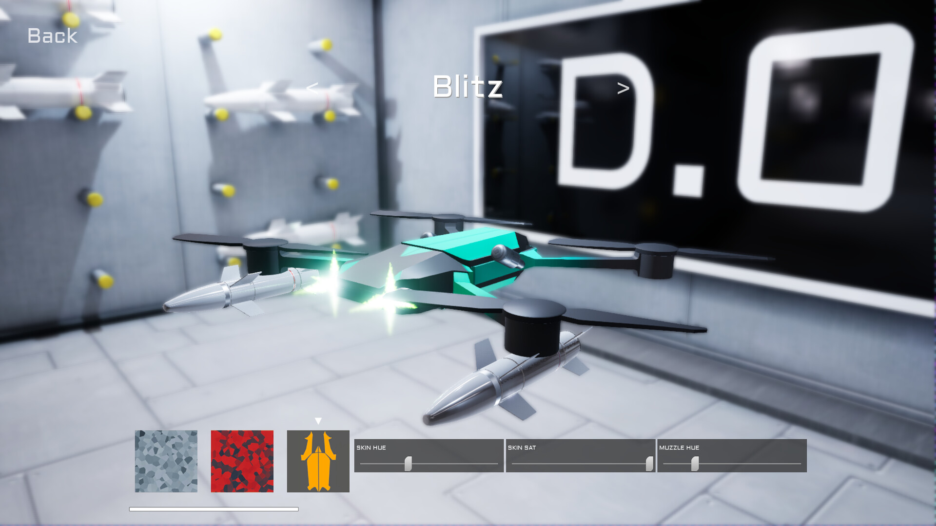 Unleash chaos from above in this fast-paced drone combat game where precision and strategy decide who rules the battlefield. Pilot one of three advanced combat drones, each with a selection of skins to choose from. Customise your drone’s skin colour and hue the muzzle flashes to make it your own. Experience realistic controls and fine-tuned movement for pinpoint accuracy in aiming. Engage in five intense game modes: