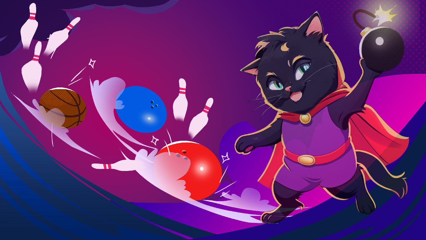 Bomb Bowling X is a casual retro game where you need to help a cute cat in a superhero cape win at Bomb Bowling.
