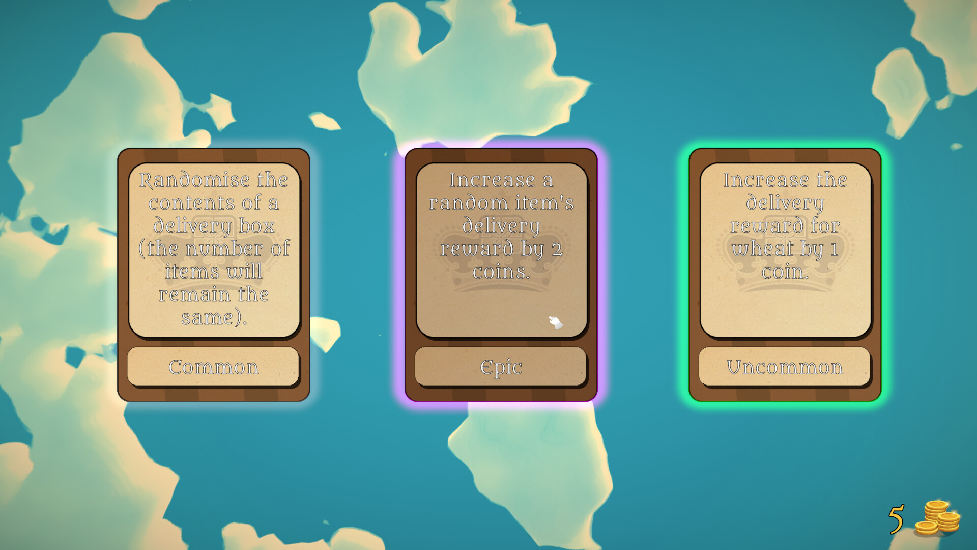 Life can be tough as a medieval courier. Explore a colourful environment as you plan your daily deliveries, select cards to help optimise your route and purchase upgrades to increase efficiency!
