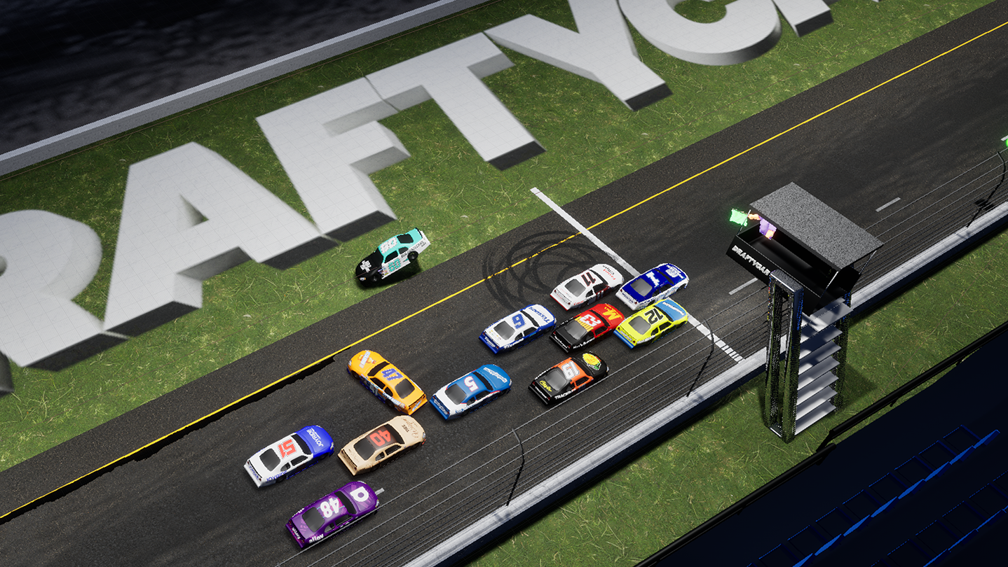 Waiting for your friends to join your server? Hang out in the ever-evolving Pit Party Lounge where you can explore the DRAFTYCAR infield first-hand. After Early Access, you'll be able to hop in a go kart or golf cart, strike a pose in victory lane, or mess around with some RC cars.