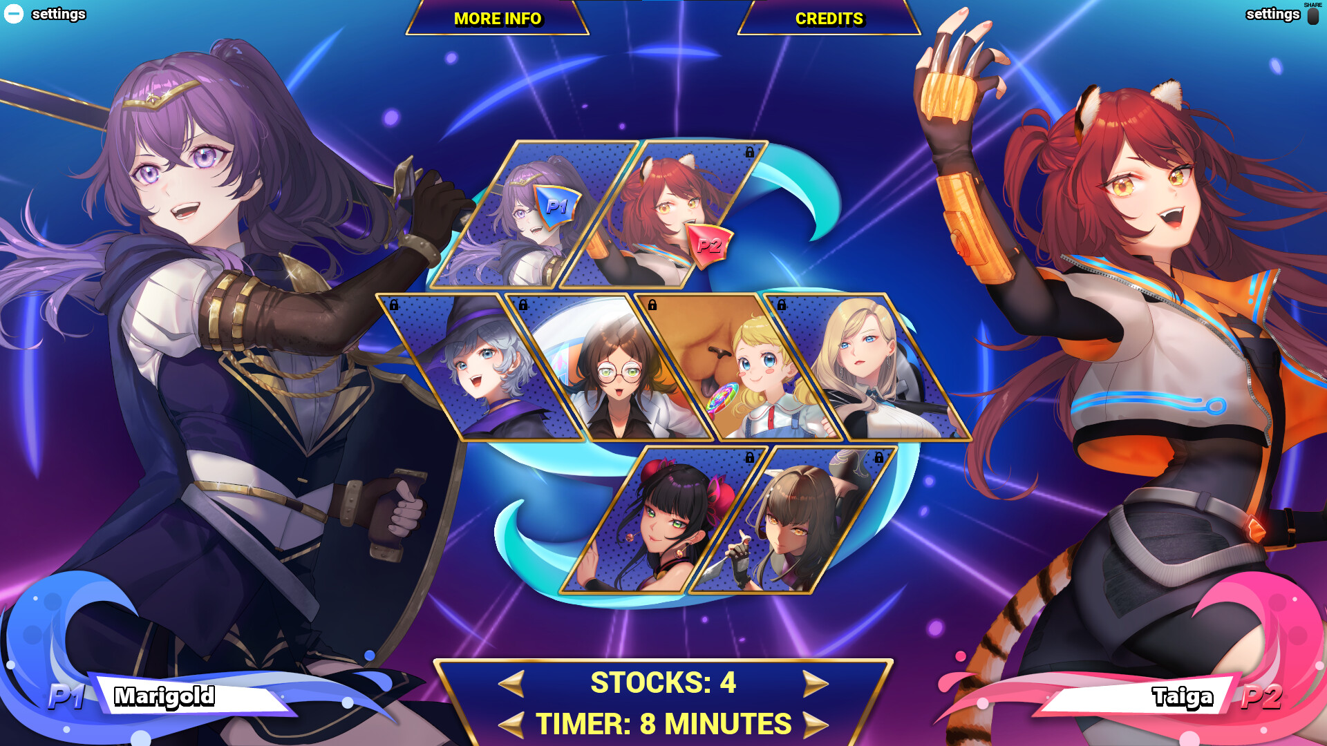 Welcome to the first prototype build of Super Waifu Tsunami! Play as the fearless, sword-fighting princess: Marigold, as you move swiftly around platforms, execute combos, and use advanced attack-canceling techniques to style on your friends in this first-look at an exciting, new anime platform-fighter!