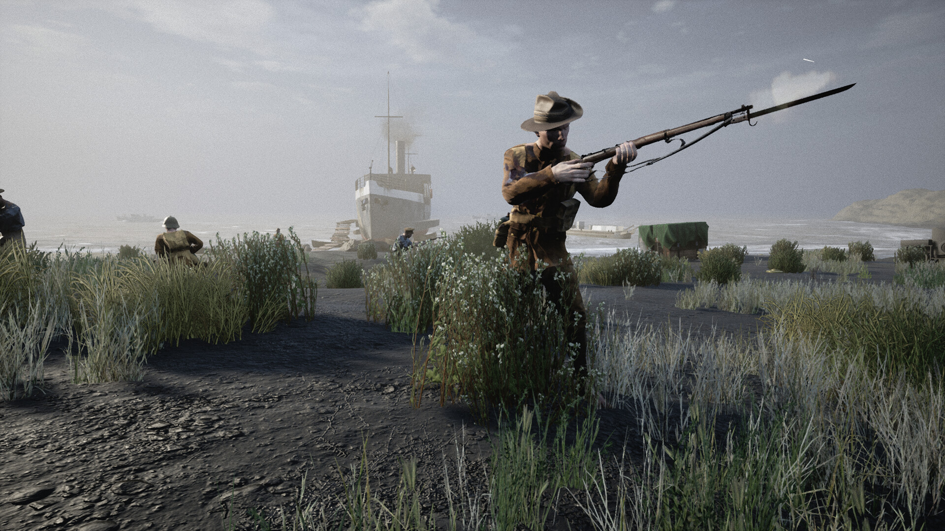 Beach Invasion 1915-Gallipoli brings modern FPS realism to arcade style on-rail shooter game mechanics. The players can choose to play two scenarios; in the first as a Turkish soldier  defending the beaches of Gallipoli, in the second one as a British soldier defending the Suez Canal. Moreover they can play together with friends in online CO-OP gamemode.