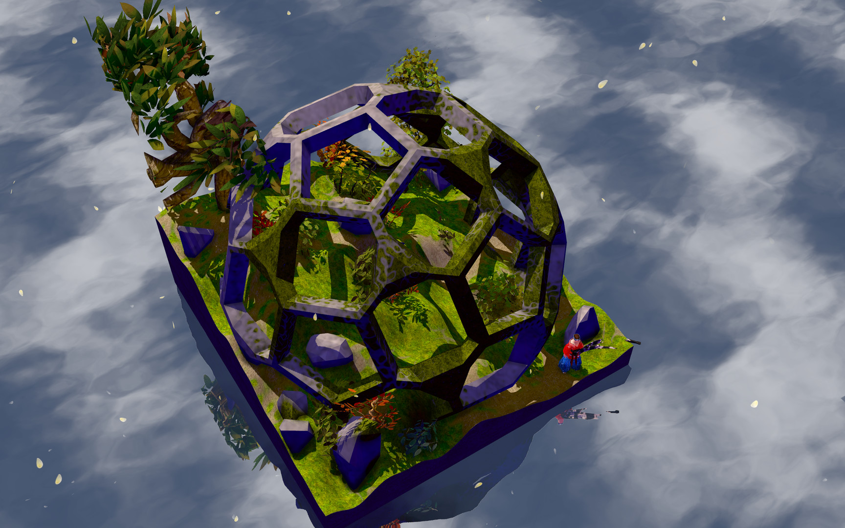 Miegakure is a puzzle/adventure game, the first that lets you explore and interact with a 4D world. In this game, the fourth dimension is not time! It is an actual fourth dimension of space, that works just like the first three dimensions we are familiar with. If you count time, this game is 5D.