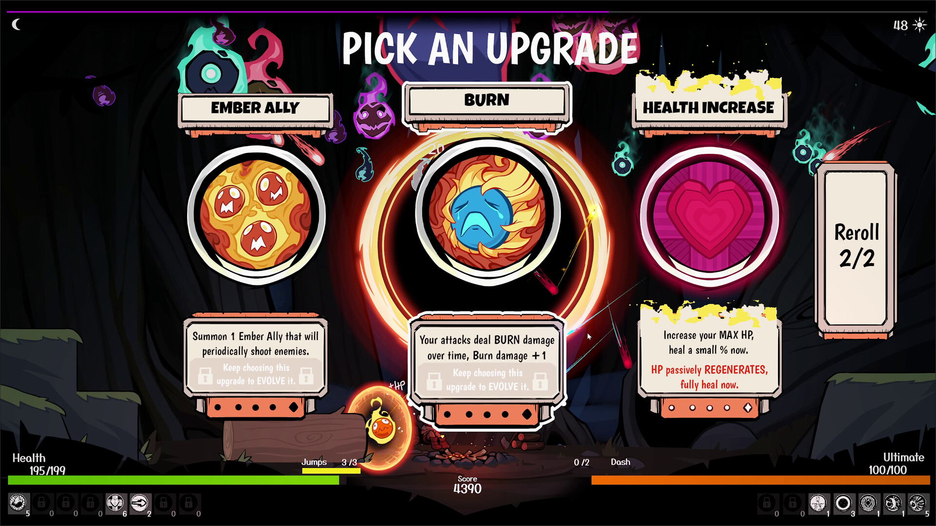 Bonfire Barrage is a compact roguelike inspired by Seraphs Last Stand, built around fast 30-minute runs, game-breaking builds, and glorious chaos.