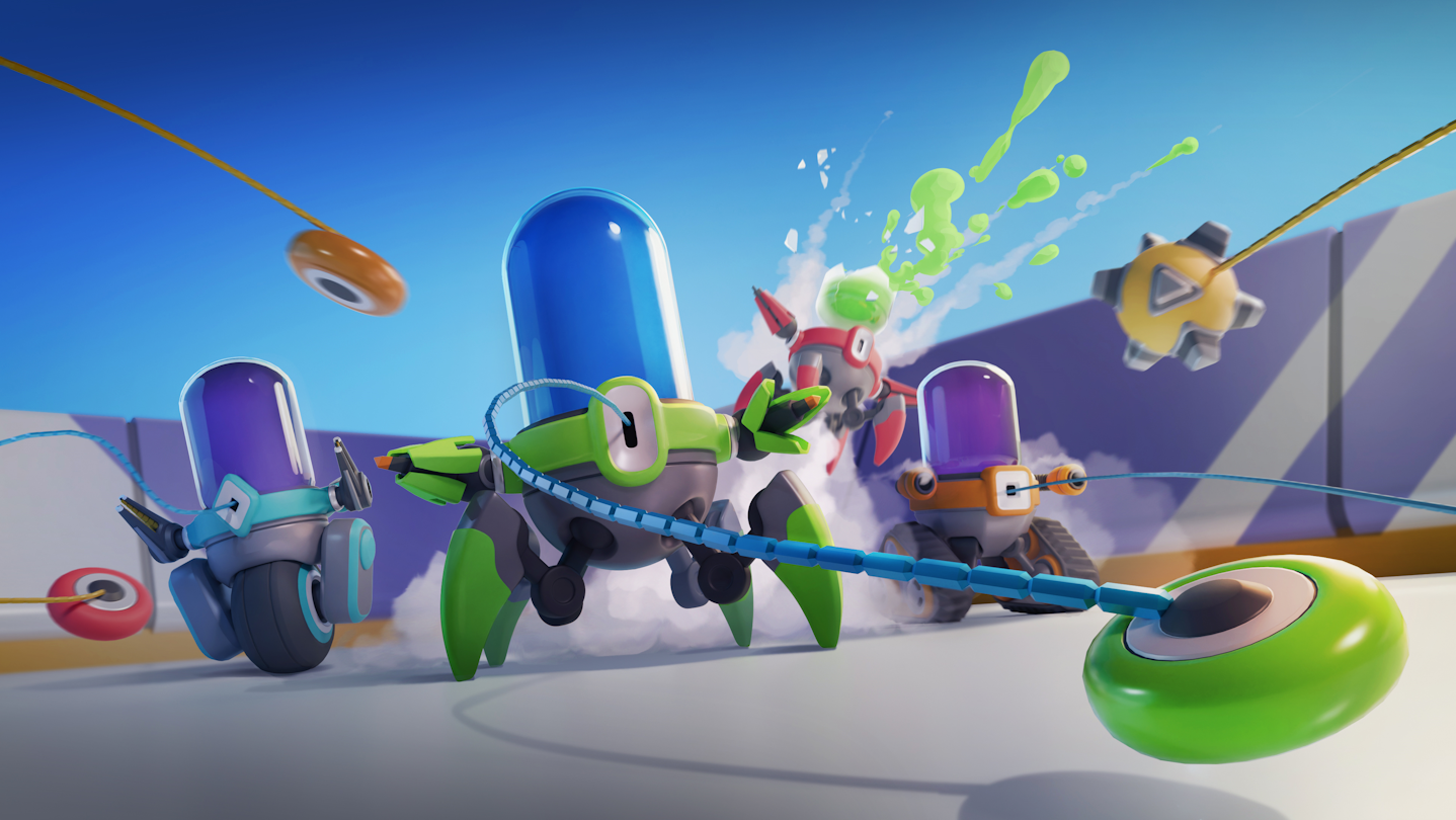 Join the fight in a compact arena, split in half by the Divisor! Use the Gripper to pull enemy robots from the other side and finish them off with your teammates. Feeling Rambo? Launch yourself to the enemy side and die WIPE THEM OUT!