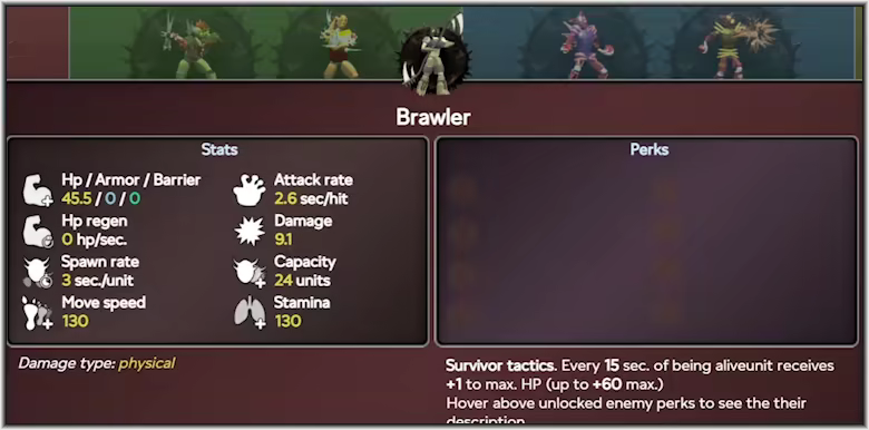 Futhermore, those unit types stats & perks are unlocked dynamicaly (Ex: enemy can get 4x of the same perk, making it very strong/fast/resourcefull, or 4 different ones, making it more versatile), promoting even more gameplay variation.